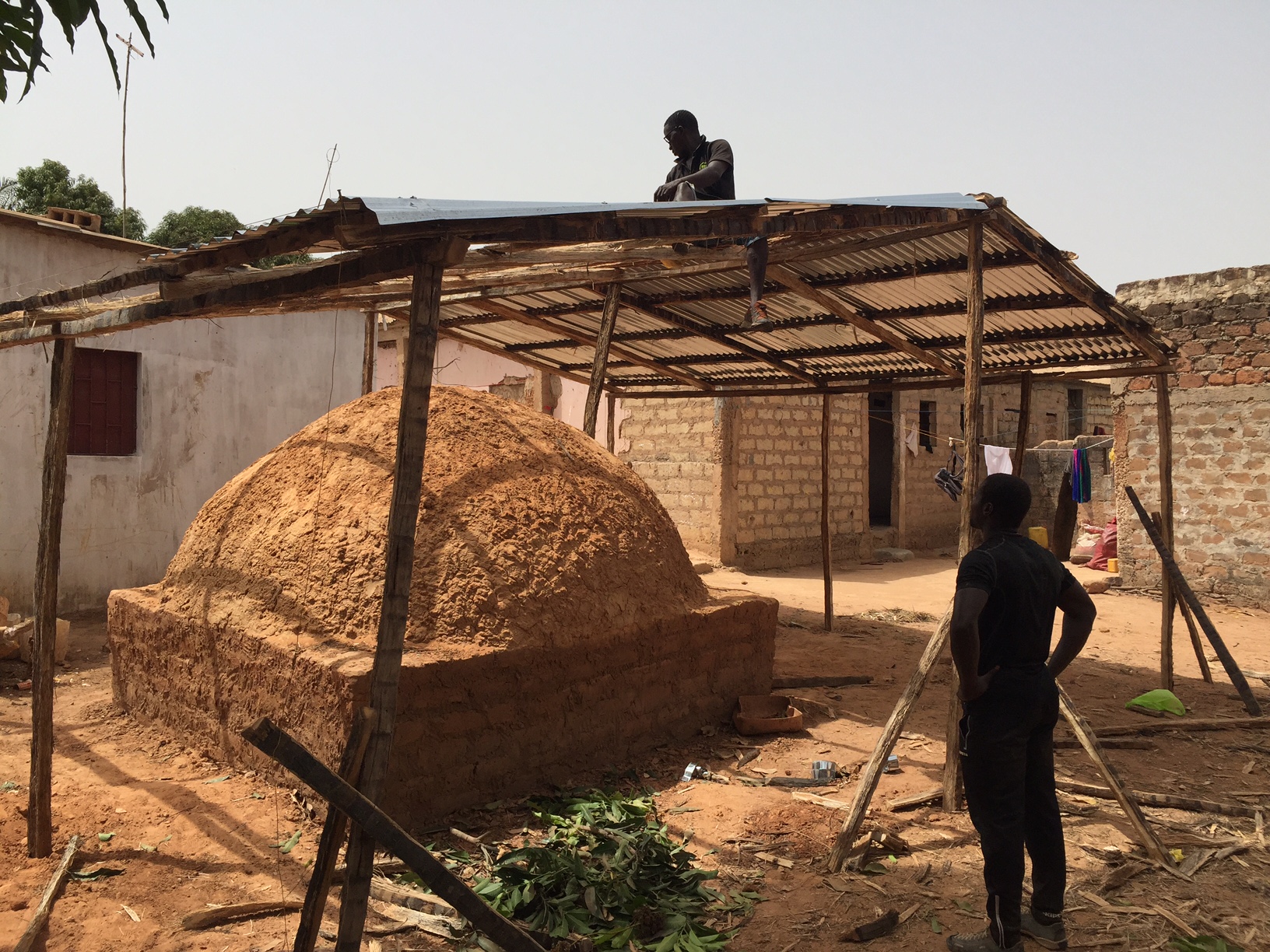 Die Überdachung ist wichtig, damit das Material – Lehm – nicht vom vielen Regen zerstört wird.