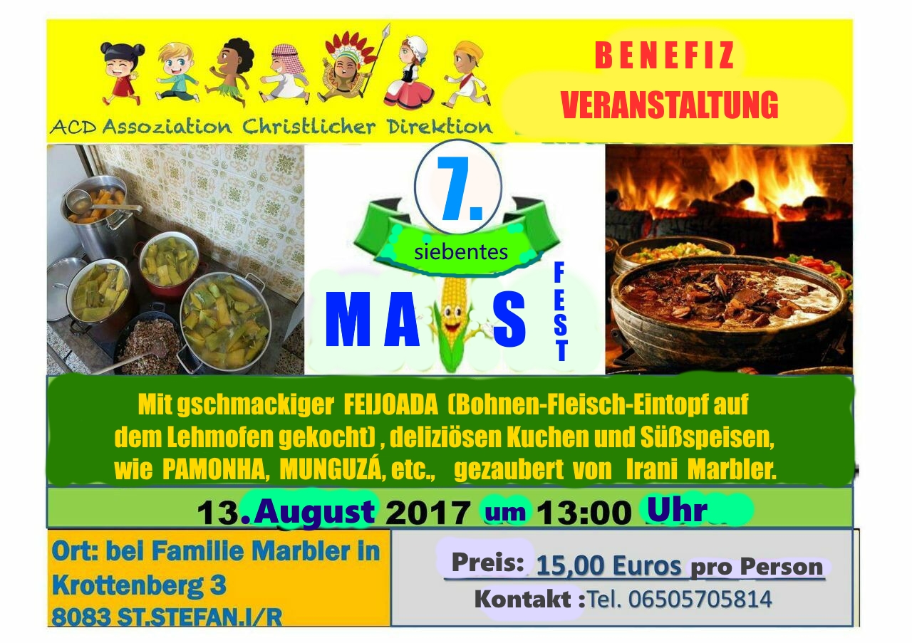Am 13. August ist es wieder soweit, daß bei Familie Marbler das traditionelle Maisfest gefeiert wird. Es ist eine BENEFIZVERANSTALTUNG die sich großer Beliebtheit erfreut.